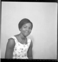 229. EAP449/2/33/229 Reference (shelfmark): EAP449/2/33/229 Title: A young girl wearing a white and black dress, necklace, earrings and an up-do, smiling and sitting face forward in the studio. Collection Area: Endangered Archives Programme Languages: Not applicable Date Range: 2nd half od the 20th century Extent: 1 TIFF image