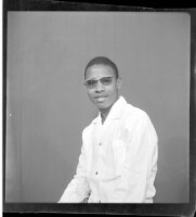237. EAP449/2/33/237 Reference (shelfmark): EAP449/2/33/237 Title: A man wearing a white long-sleeved dress shirt and glasses smiling and sitting face forward in the studio. Collection Area: Endangered Archives Programme Languages: Not applicable Date Range: 2nd half od the 20th century Extent: 1 TIFF image