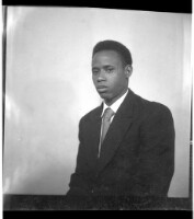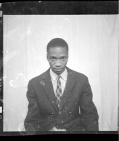 Two men sitting, the man on the right wearing a black boubou and the man on the left wearing a dress shirt and black suit, facing forward in the studio.