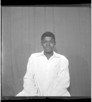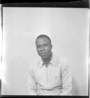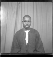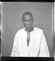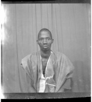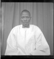 380. EAP449/2/33/380 Reference (shelfmark): EAP449/2/33/380 Title: A young man with light complexion sitting facing forward in the studio wearing a white boubou. Collection Area: Endangered Archives Programme Languages: Not applicable Date Range: 2nd half od the 20th century Extent: 1 TIFF image