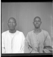 378. EAP449/2/33/378 Reference (shelfmark): EAP449/2/33/378 Title: Two men sitting facing forward in the studio, one wearing a white boubou and the other wearing a blue boubou. Collection Area: Endangered Archives Programme Languages: Not applicable Date Range: 2nd half od the 20th century Extent: 1 TIFF image