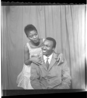 489. EAP449/2/33/489 Reference (shelfmark): EAP449/2/33/489 Title: A couple, a young girl standing wearing a black and white dress with her arms on a man sitting and smiling, wearing a white shirt and black suit. Collection Area: Endangered Archives Programme Languages: Not applicable Date Range: 2nd half od the 20th century Extent: 1 TIFF image