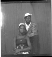 43. EAP449/2/33/43 Reference (shelfmark): EAP449/2/33/43 Title: A couple, a man wearing a jacket, pants, and a hat, and a woman wearing a dress sitting face-forward in the studio Collection Area: Endangered Archives Programme Languages: Not applicable Date Range: 2nd half od the 20th century Extent: 1 TIFF image