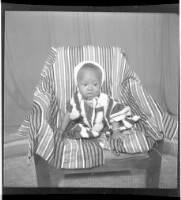 44. EAP449/2/33/44 Reference (shelfmark): EAP449/2/33/44 Title: A baby in a jumper and bonnet sitting in a chair face-forward in the studio Collection Area: Endangered Archives Programme Languages: Not applicable Date Range: 2nd half od the 20th century Extent: 1 TIFF image