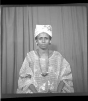 46. EAP449/2/33/46 Reference (shelfmark): EAP449/2/33/46 Title: A woman wearing a pagne, headscarf, and necklace sitting face-forward in the studio Collection Area: Endangered Archives Programme Languages: Not applicable Date Range: 2nd half od the 20th century Extent: 1 TIFF image