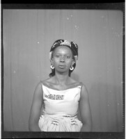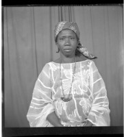 51. EAP449/2/33/51 Reference (shelfmark): EAP449/2/33/51 Title: A woman wearing a pagne, headscarf, and necklace sitting face-forward in the studio Collection Area: Endangered Archives Programme Languages: Not applicable Date Range: 2nd half od the 20th century Extent: 1 TIFF image