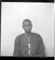 54. EAP449/2/33/54 Reference (shelfmark): EAP449/2/33/54 Title: A man wearing a black boubou sitting face-forward in the studio Collection Area: Endangered Archives Programme Languages: Not applicable Date Range: 2nd half od the 20th century Extent: 1 TIFF image