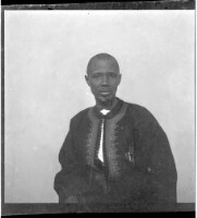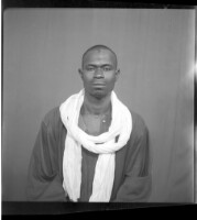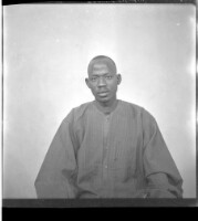 61. EAP449/2/33/61 Reference (shelfmark): EAP449/2/33/61 Title: A man wearing a black boubou and a turban around his neck sitting face-forward in the studio Collection Area: Endangered Archives Programme Languages: Not applicable Date Range: 2nd half od the 20th century Extent: 1 TIFF image