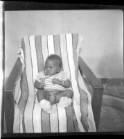 63. EAP449/2/33/63 Reference (shelfmark): EAP449/2/33/63 Title: A baby in a jumper sitting in a chair facing forward in the studio. Collection Area: Endangered Archives Programme Languages: Not applicable Date Range: 2nd half od the 20th century Extent: 1 TIFF image