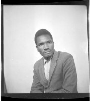 62. EAP449/2/33/62 Reference (shelfmark): EAP449/2/33/62 Title: A man wearing a black boubou sitting face-forward in the studio. Collection Area: Endangered Archives Programme Languages: Not applicable Date Range: 2nd half od the 20th century Extent: 1 TIFF image
