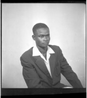 66. EAP449/2/33/66 Reference (shelfmark): EAP449/2/33/66 Title: A man in a black suit and white shirt underneath sitting in profile view in the studio. Collection Area: Endangered Archives Programme Languages: Not applicable Date Range: 2nd half od the 20th century Extent: 1 TIFF image