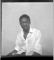 70. EAP449/2/33/70 Reference (shelfmark): EAP449/2/33/70 Title: A man wearing a shite shirt sitting face-forward in the studio. Collection Area: Endangered Archives Programme Languages: Not applicable Date Range: 2nd half od the 20th century Extent: 1 TIFF image