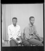 1310. EAP449/2/5/1310 Reference (shelfmark): EAP449/2/5/1310 Title: Two young men sitting in the studio; one wearing a plaid shirt, the other wearing a black shirt Collection Area: Endangered Archives Programme Languages: Not applicable Date Range: 2nd half od the 20th century Extent: 1 TIFF image