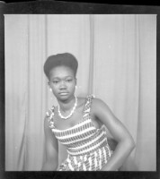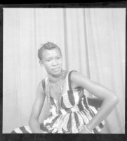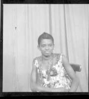 173. EAP449/2/7/173 Reference (shelfmark): EAP449/2/7/173 Title: A woman sitting in the studio wearing a black and white dress, necklaces, and earrings Collection Area: Endangered Archives Programme Languages: Not applicable Date Range: 2nd half od the 20th century Extent: 1 TIFF image
