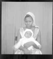175. EAP449/2/7/175 Reference (shelfmark): EAP449/2/7/175 Title: A woman sitting on a chair in the studio with a baby dressed in white on her lap Collection Area: Endangered Archives Programme Languages: Not applicable Date Range: 2nd half od the 20th century Extent: 1 TIFF image