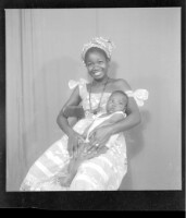 190. EAP449/2/7/190 Reference (shelfmark): EAP449/2/7/190 Title: A smiling woman sitting in the studio with a baby dressed in white laying in her lap Collection Area: Endangered Archives Programme Languages: Not applicable Date Range: 2nd half od the 20th century Extent: 1 TIFF image