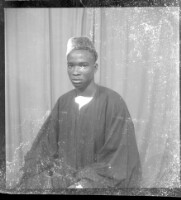 202. EAP449/2/7/202 Reference (shelfmark): EAP449/2/7/202 Title: A man sitting in the studio wearing a black boubou and a fez Collection Area: Endangered Archives Programme Languages: Not applicable Date Range: 2nd half od the 20th century Extent: 1 TIFF image
