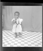 205. EAP449/2/7/205 Reference (shelfmark): EAP449/2/7/205 Title: A little girl standing in the studio wearing a dress and amulets Collection Area: Endangered Archives Programme Languages: Not applicable Date Range: 2nd half od the 20th century Extent: 1 TIFF image