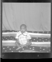 206. EAP449/2/7/206 Reference (shelfmark): EAP449/2/7/206 Title: A little boy sitting on a black pagne on the studio floor Collection Area: Endangered Archives Programme Languages: Not applicable Date Range: 2nd half od the 20th century Extent: 1 TIFF image