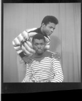 234. EAP449/2/7/234 Reference (shelfmark): EAP449/2/7/234 Title: Two men in the studio wearing striped sweaters; one sitting, one standing behind him Collection Area: Endangered Archives Programme Languages: Not applicable Date Range: 2nd half od the 20th century Extent: 1 TIFF image