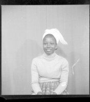 236. EAP449/2/7/236 Reference (shelfmark): EAP449/2/7/236 Title: A smiling young woman sitting in the studio wearing a white sweater Collection Area: Endangered Archives Programme Languages: Not applicable Date Range: 2nd half od the 20th century Extent: 1 TIFF image
