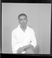 238. EAP449/2/7/238 Reference (shelfmark): EAP449/2/7/238 Title: A young man sitting in the studio with his hands crossed in his lap and wearing a white shirt Collection Area: Endangered Archives Programme Languages: Not applicable Date Range: 2nd half od the 20th century Extent: 1 TIFF image