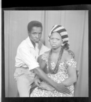 245. EAP449/2/7/245 Reference (shelfmark): EAP449/2/7/245 Title: A young couple in the studio; the man wearing a white shirt and pants, the woman wearing a dress Collection Area: Endangered Archives Programme Languages: Not applicable Date Range: 2nd half od the 20th century Extent: 1 TIFF image