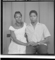 250. EAP449/2/7/250 Reference (shelfmark): EAP449/2/7/250 Title: A young couple sitting in the studio; the man wearing a grey shirt and a watch, the woman wearing a white polka-dot dress and a necklace Collection Area: Endangered Archives Programme Languages: Not applicable Date Range: 2nd half od the 20th century Extent: 1 TIFF image