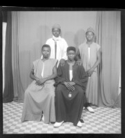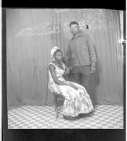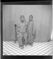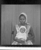 A family of five in the studio; the mother sitting up front with a baby on her lap and two children standing at her sides, the bigger child standing at the back (same family from Image 05962)