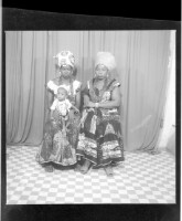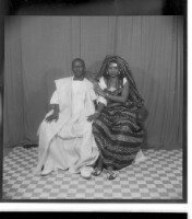 332. EAP449/2/7/332 Reference (shelfmark): EAP449/2/7/332 Title: A couple sitting in the studio; the man wearing a white boubou and the woman wearing a black boubou Collection Area: Endangered Archives Programme Languages: Not applicable Date Range: 2nd half od the 20th century Extent: 1 TIFF image