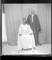 338. EAP449/2/7/338 Reference (shelfmark): EAP449/2/7/338 Title: Two men in the studio; the man in the white boubou sitting, the man in the black boubou standing Collection Area: Endangered Archives Programme Languages: Not applicable Date Range: 2nd half od the 20th century Extent: 1 TIFF image