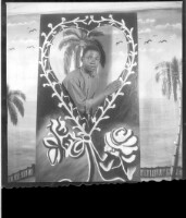 381. EAP449/2/7/381 Reference (shelfmark): EAP449/2/7/381 Title: A man standing in front of a backdrop in the studio and behind the fin de l'année (End of the Year) painting Collection Area: Endangered Archives Programme Languages: Not applicable Date Range: 2nd half od the 20th century Extent: 1 TIFF image
