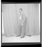 383. EAP449/2/7/383 Reference (shelfmark): EAP449/2/7/383 Title: A man standing in the studio wearing a white shirt, grey suit, a watch, and black shoes Collection Area: Endangered Archives Programme Languages: Not applicable Date Range: 2nd half od the 20th century Extent: 1 TIFF image