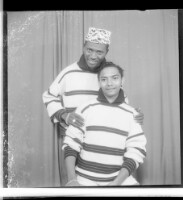 384. EAP449/2/7/384 Reference (shelfmark): EAP449/2/7/384 Title: Two young men in the studio wearing matching sweaters; one standing, the other sitting Collection Area: Endangered Archives Programme Languages: Not applicable Date Range: 2nd half od the 20th century Extent: 1 TIFF image