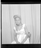 47. EAP449/2/7/47 Reference (shelfmark): EAP449/2/7/47 Title: A woman sitting in the studio wearing a black and white dress and her hair in a tourokala Collection Area: Endangered Archives Programme Languages: Not applicable Date Range: 2nd half od the 20th century Extent: 1 TIFF image