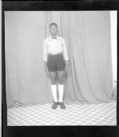 75. EAP449/2/7/75 Reference (shelfmark): EAP449/2/7/75 Title: A man standing in the studio wearing a white shirt, black shorts, white socks, and black shoes Collection Area: Endangered Archives Programme Languages: Not applicable Date Range: 2nd half od the 20th century Extent: 1 TIFF image