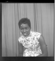 81. EAP449/2/7/81 Reference (shelfmark): EAP449/2/7/81 Title: A young woman sitting in the studio wearing a floral print dress Collection Area: Endangered Archives Programme Languages: Not applicable Date Range: 2nd half od the 20th century Extent: 1 TIFF image