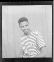 87. EAP449/2/7/87 Reference (shelfmark): EAP449/2/7/87 Title: A young man sitting in the studio wearing a striped t-shirt Collection Area: Endangered Archives Programme Languages: Not applicable Date Range: 2nd half od the 20th century Extent: 1 TIFF image