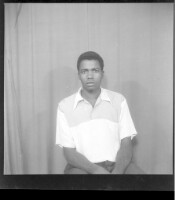 90. EAP449/2/7/90 Reference (shelfmark): EAP449/2/7/90 Title: A young man sitting in the studio wearing a white t-shirt Collection Area: Endangered Archives Programme Languages: Not applicable Date Range: 2nd half od the 20th century Extent: 1 TIFF image