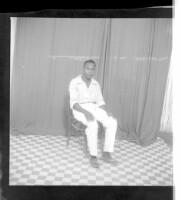 128. EAP449/2/8/128 Reference (shelfmark): EAP449/2/8/128 Title: A man wearing a shirt and pants sitting face-forward in the studio. Collection Area: Endangered Archives Programme Languages: Not applicable Date Range: 2nd half od the 20th century Extent: 1 TIFF image