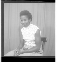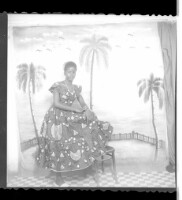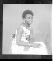 210. EAP449/2/8/210 Reference (shelfmark): EAP449/2/8/210 Title: A woman wearing a dress sitting face-forward in the studio. Collection Area: Endangered Archives Programme Languages: Not applicable Date Range: 2nd half od the 20th century Extent: 1 TIFF image