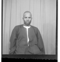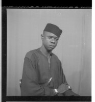 223. EAP449/2/8/223 Reference (shelfmark): EAP449/2/8/223 Title: A man wearing a boubou sitting face-forward in the studio. Collection Area: Endangered Archives Programme Languages: Not applicable Date Range: 2nd half od the 20th century Extent: 1 TIFF image