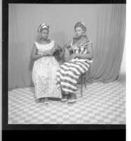 222. EAP449/2/8/222 Reference (shelfmark): EAP449/2/8/222 Title: Two women, one wearing a dress and the other wearing a pagne, sitting in profile in the studio. Collection Area: Endangered Archives Programme Languages: Not applicable Date Range: 2nd half od the 20th century Extent: 1 TIFF image