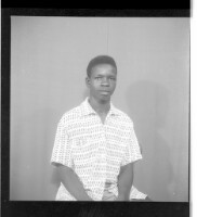 228. EAP449/2/8/228 Reference (shelfmark): EAP449/2/8/228 Title: A man wearing a shirt standing in profile in the studio. Collection Area: Endangered Archives Programme Languages: Not applicable Date Range: 2nd half od the 20th century Extent: 1 TIFF image