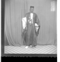 227. EAP449/2/8/227 Reference (shelfmark): EAP449/2/8/227 Title: A man wearing a boubou wearing a hat standing face-forward in the studio. Collection Area: Endangered Archives Programme Languages: Not applicable Date Range: 2nd half od the 20th century Extent: 1 TIFF image