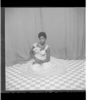 292. EAP449/2/8/292 Reference (shelfmark): EAP449/2/8/292 Title: A woman wearing a large dress sitting face-forward on the ground in the studio. Collection Area: Endangered Archives Programme Languages: Not applicable Date Range: 2nd half od the 20th century Extent: 1 TIFF image