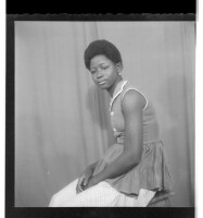 299. EAP449/2/8/299 Reference (shelfmark): EAP449/2/8/299 Title: A woman wearing a dress sitting in profile in the studio. Collection Area: Endangered Archives Programme Languages: Not applicable Date Range: 2nd half od the 20th century Extent: 1 TIFF image