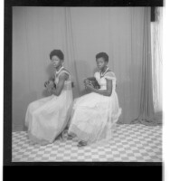 298. EAP449/2/8/298 Reference (shelfmark): EAP449/2/8/298 Title: Two women wearing large dresses sitting in profile in the studio. Collection Area: Endangered Archives Programme Languages: Not applicable Date Range: 2nd half od the 20th century Extent: 1 TIFF image