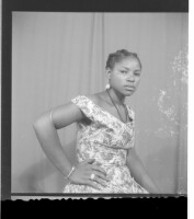 300. EAP449/2/8/300 Reference (shelfmark): EAP449/2/8/300 Title: A woman wearing a dress sitting face-forward in the studio. Collection Area: Endangered Archives Programme Languages: Not applicable Date Range: 2nd half od the 20th century Extent: 1 TIFF image