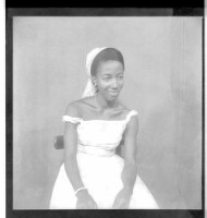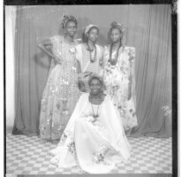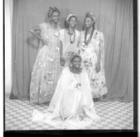 309. EAP449/2/8/309 Reference (shelfmark): EAP449/2/8/309 Title: Four women wearing large pagnes, three standing in profile behind and one sitting face-forward in front in the studio. Collection Area: Endangered Archives Programme Languages: Not applicable Date Range: 2nd half od the 20th century Extent: 1 TIFF image